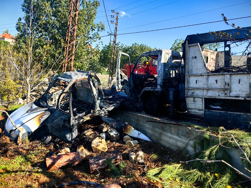 وفي سياق متصل، أفيد عن قيام الطيران المسير المعادي بالاغارة على رابيد في بلدة الطيبة اثناء تواجد شاحنة لشركة كهرباء لبنان وعدد من العمال ما ادى الى احتراق الاليتين وإصابة عدد من العمال.