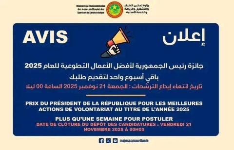 أعلنت مديرية الخدمة المدنية عن فتح باب الترشح لنيل جائزة رئيس الجمهورية للأعمال التطوعية لعام 2025، المخصصة لتكريم المبادرات الفردية والجماعية في مجالات الخدمة المدنية التطوعية، والتدخل الإنساني في