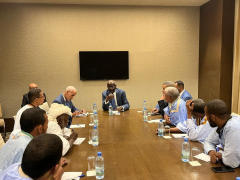 عقد وزير الخارجية محمد سالم ولد مرزوك، على هامش زيارته الرسمية إلى جمهورية مالي، لقاءً مع ممثلي الجالية الموريتانية المقيمة في هذا البلد، وذلك بمقر إقامته في باماكو، بحضور أعضاء البعثة الدبلوماسية