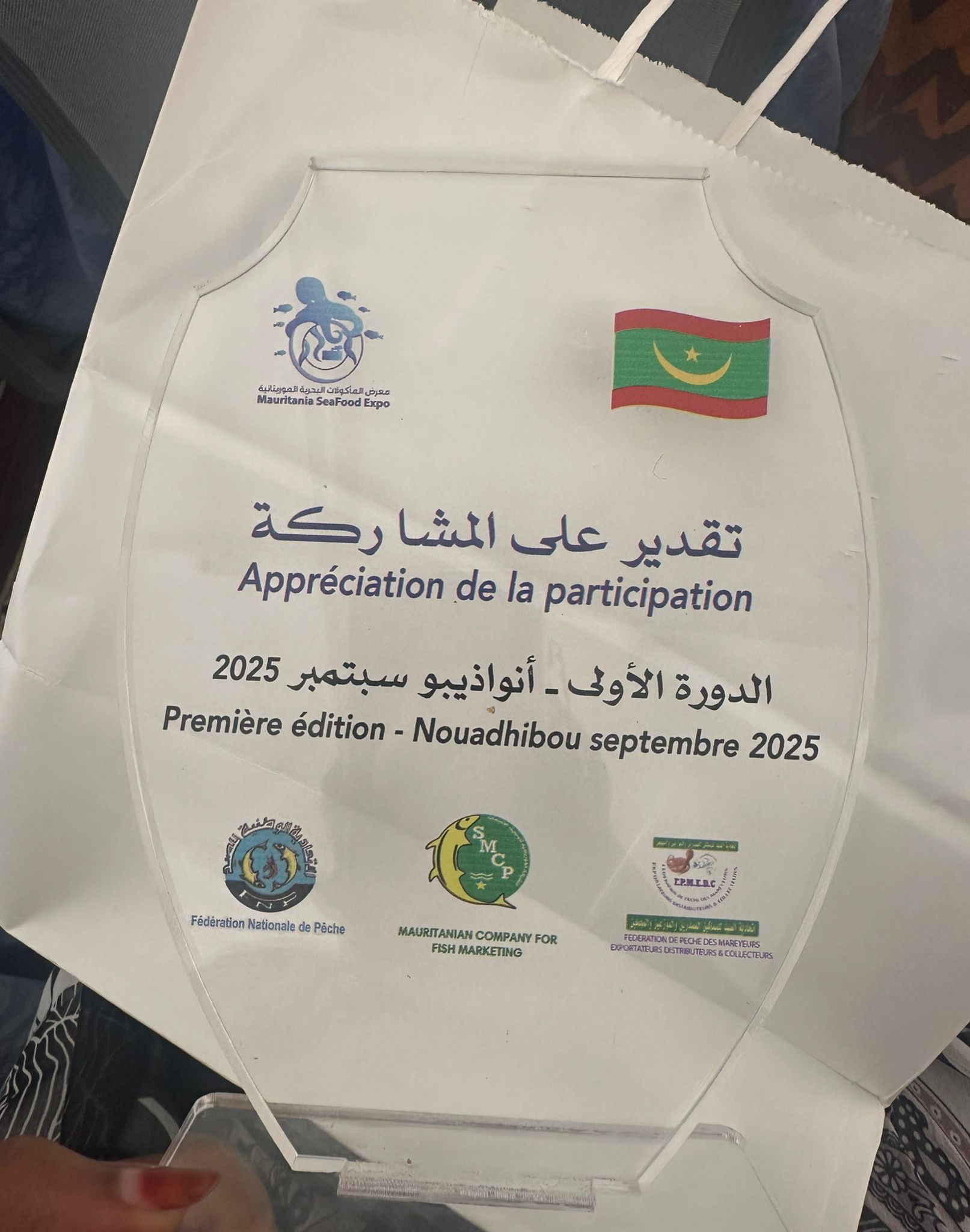 نتيجة لهذا الحضور المميز والمحتوى الغني، حصل جناح المؤسسة على جائزة تقديرية من اللجنة المنظمة للمعرض، اعترافاً بأهمية المشروع المعروض وبالجهود الكبيرة التي يبذلها طاقم المؤسسة من أجل النهوض بقطاع الصيد التقليدي في موريتانيا.