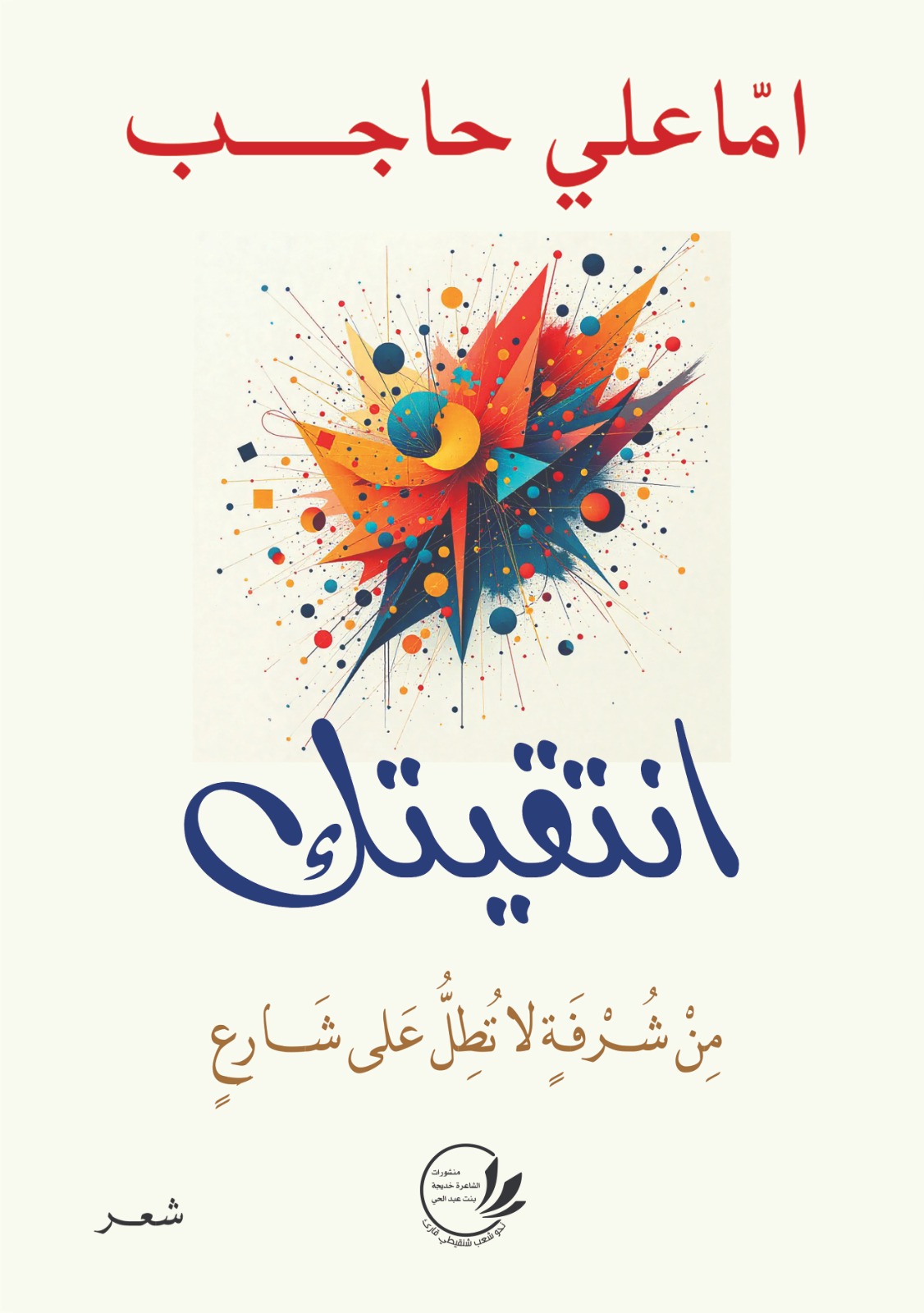 وهذا هو الديوان الرابع الذي يصدر للشاعر امّاعلي حاجب بعد دواوينه: "غرابيل مسقوفة بالثقوب" الصادر بالشارقة 2020، و"خربشَات طفل" الصادر عن اتحاد الأدباء والكتاب الموريتانيين 2020، و" عزف على وتر الهزيمة" 2014