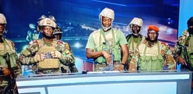 ظهر ما لا يقل عن ثمانية جنود، يرتدي بعضهم خوذات، على شاشة التلفزيون صباح الأحد ليعلنوا أن لجنة عسكرية بقيادة العقيد تيغري باسكال تولت الحكم، وأعلنت حل المؤسسات الوطنية وتعليق الدستور وإغلاق الحدود البرية والبحرية والجوية.