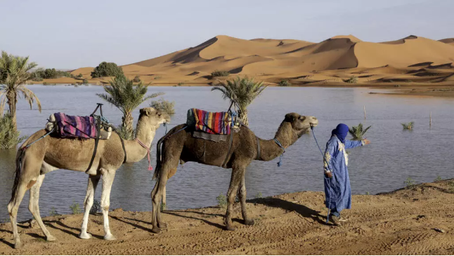 بعثت الأمطار الغزيرة التي هطلت مؤخرا في المغرب الحياة مجددا في بحيرات وبرك مائية كانت قد نضبت لسنوات بفعل الجفاف وارتفاع درجات الحرارة في صحارى جنوب شرق المملكة. وأعادت هذه الظاهرة الاستثنائية الارتياح إلى سكان هذه الواحات السياحية وزوارها.