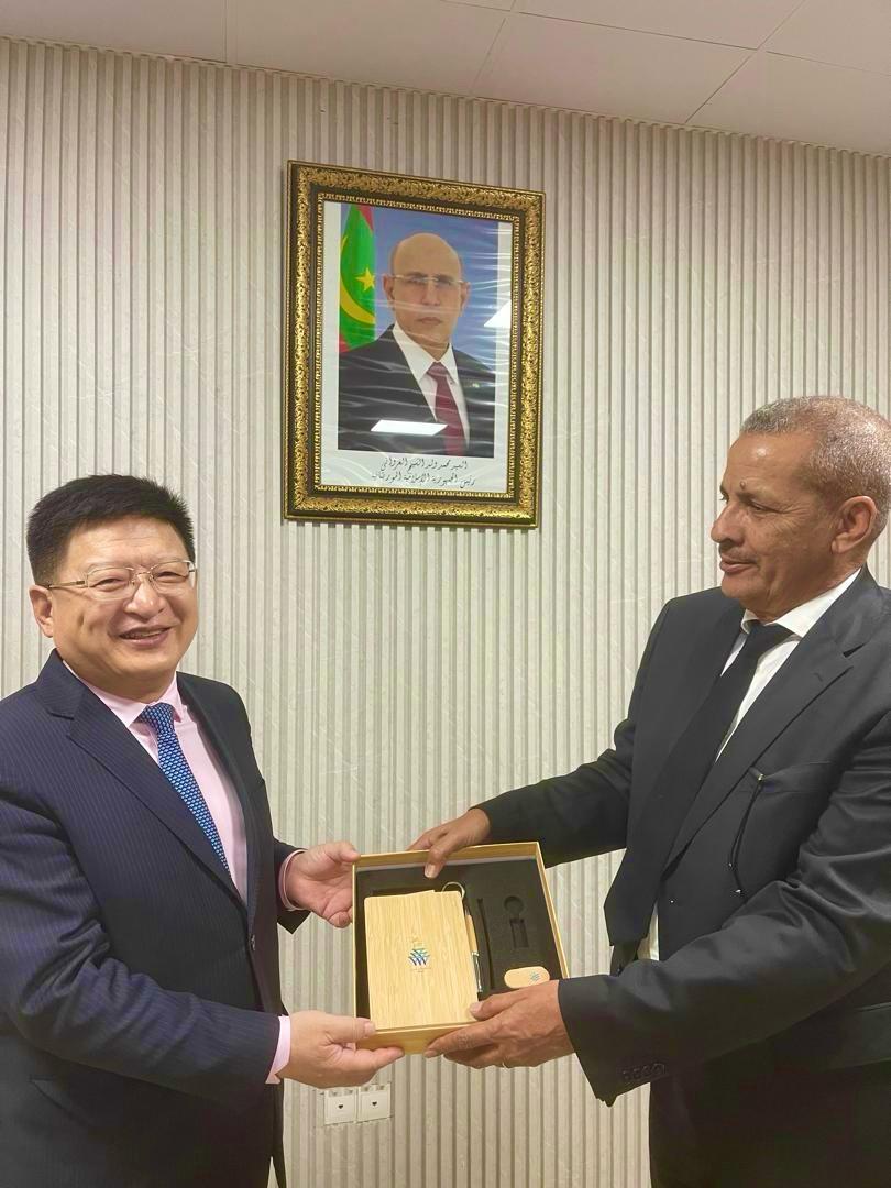 استقبل المدير العام لميناء نواكشوط المستقل، السيد لمرابط بناهي، محاطًا بمعاونيه، سعادة سفير جمهورية الصين الشعبية لدى موريتانيا، السيد تانغ زونغ دونغ، مرفوقًا باثنين من معاونيه، وذلك في إطار زيارة رسمية تهدف إلى تعزيز علاقات التعاون بين الجانبين.