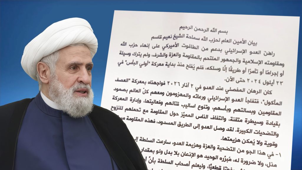 وأكد أن “مسؤوليتها أن تتراجع عن خطيئاتها الخطيرة التي تضع لبنان في دوامة عدم الاستقرار، وهي مسؤولة أن توقف المفاوضات المباشرة مع العدو الإسرائيلي وتعتمد غير المباشرة، وأن تلغي قرارها في ٢ آذار الذي يُجرِّم المقاومة وشعبها أي أكثر من نصف الشعب اللبناني، لتتمكن من متابعة حوار داخلي يضع مصلحة لبنان فوق كل اعتبار من دون الخضوع للإملاءات الإسرائيلية والخارجية”.
