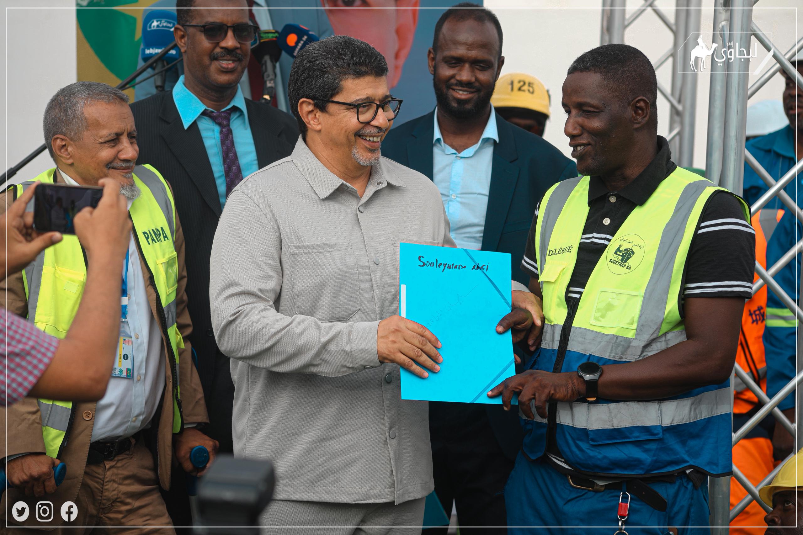 أحتضن ميناء نواكشوط المستقل، مساء اليوم الخميس، حفلا مخصصا لتوزيع قطع أرضية على مجموعة من الحمالة العاملين بشركة "سوجيتراب"، وذلك في إطار تنفيذ تعهد لرئيس الجمهورية، السيد محمد ولد الشيخ الغزواني، دعمًا للفئات العمالية.